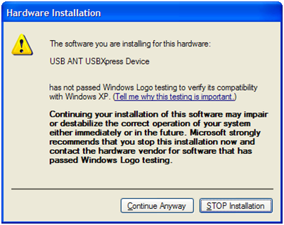 Re-installing the ANTUSB1 drivers is not always a trivial procedure. To do this properly, the old ANTUSB1 driver must first be completely removed from the system. Unfortunately, this is not as easy as uninstalling the driver via Device Manager. To completely remove the ANTUSB1 driver in Windows XP, please follow the technical note “Uninstalling USB1 Drivers” . Once the old drivers are completely removed, the new drivers may be installed using the standard procedure.
